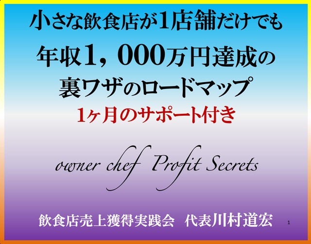 1ケ月のサポート付き198,000円 小さな30席までの飲食店が1店舗だけで年収1,000万円達成方法のロードマップの動画